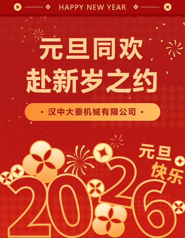 岁启新元,福伴安康。值此2026年元旦佳节,汉中大秦机械有限公司向所有合作伙伴、各界朋友致以诚挚祝福!